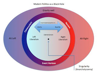 For those who are stupid, I'm not saying that the Alt-Reich doesn't have some good ideas, it's just that its ideas when formulated through the metaphysics of Modernism leads to modernist outcomes. i.e. failure or progression of the Left. Ethno-nationalism, needs to be formulated through a Christian Realist framework in order for it not become self destructive or ultimately further the Left. There's is no way to restore the glories of the past because as long as the black hole of Modernism is embraced you're trapped it event horizon from which you cannot escape.